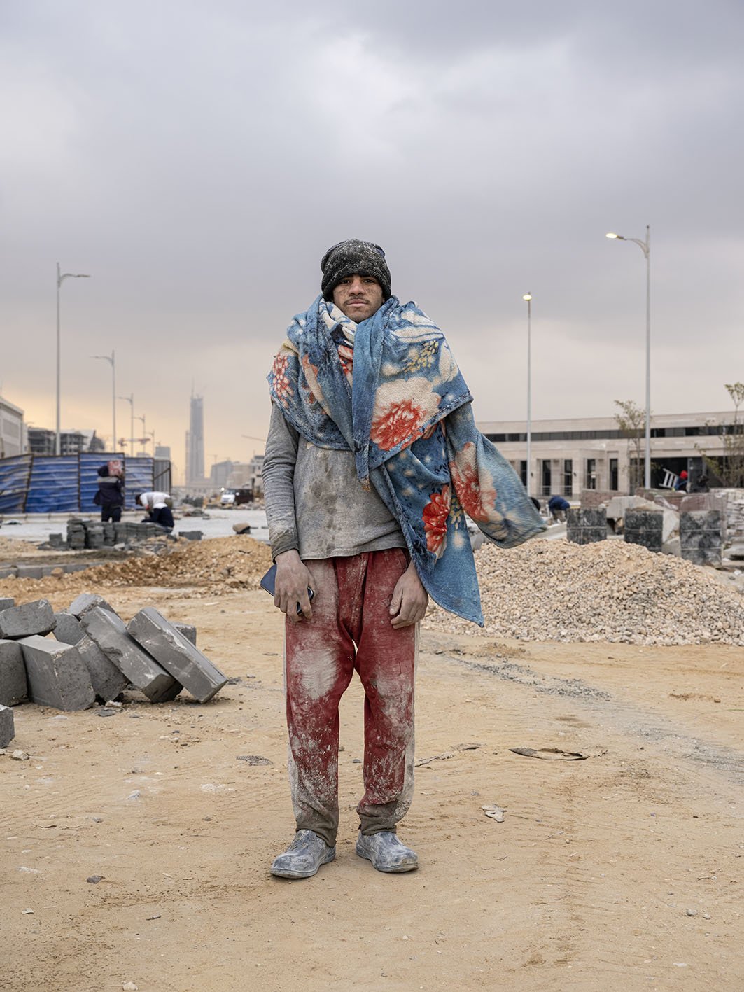 Construction worker in the Government district of the NAC, Egypt, 16 January 2022.